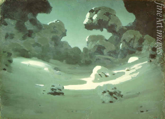 Winter, Winter landscape, Snow, Nature, Seasons, Poetry, Trees, Time of Day, Evening, Impression, Wood, Russia, Forest, Night, Forrest, Russian winter, Moonlight spots in the wood, Moonlight, Moonlit night, Peredvizhniki, The Wanderers, The Itinerants, Moonlit Lane