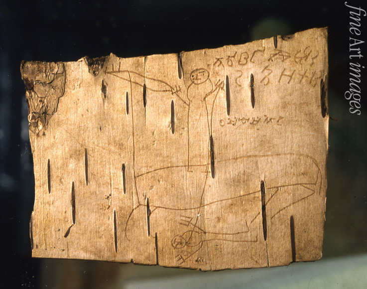 Birch bark document No 200. Self-portrait of Youth Onfim from Novgorod