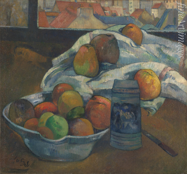 Tahiti, Cloisonism, South Pacific, Polynesia, Sun light, Paradise, Fruit, Idyll, Impression, At the Table, Pears, Plate, Grapes, Figes, Pomegranates, Pear, Impressionism, Impressionists