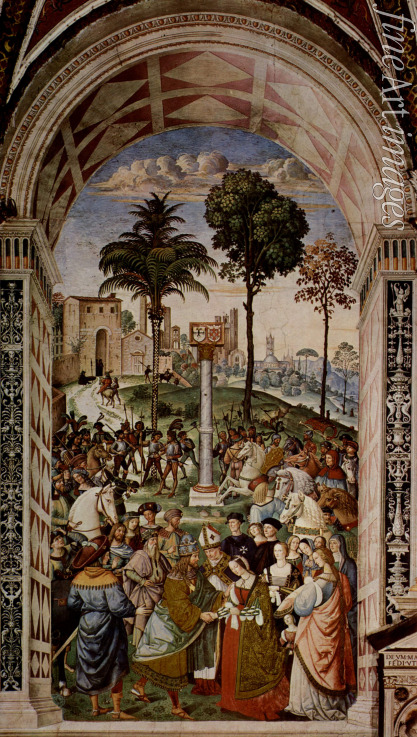 Title:Piccolomini presents the bride Eleanor of Portugal to Frederick III (Frescos on the life and deeds of Enea Silvio Piccolomini)