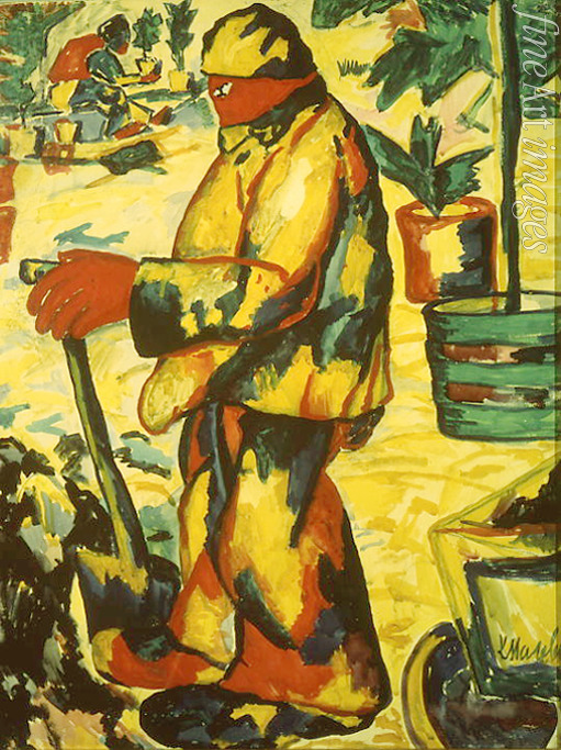 Summer, Decorative, Country side, Seasons, Colourfulness, Man, Russia, Job, Russian Avant-garde, Country village, Gardener, Cubofuturism, Cubo-Futurism