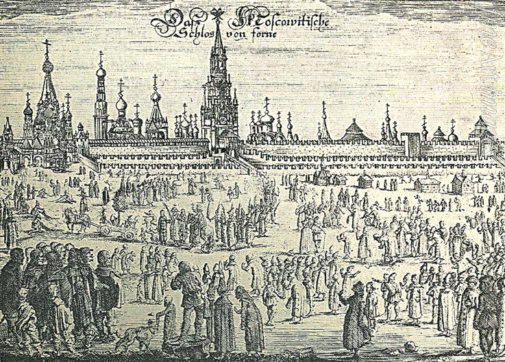 The donkey walk in the Moscow Kremlin (From Travels to the Great Duke of Muscovy and the King of Persia by Adam Olearius)