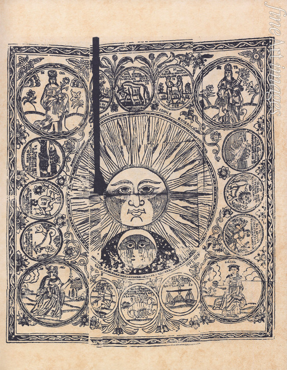 The sun with zodiac signs and four seasons