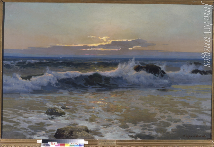 Nature, Poetry, Sun light, France, Sunset, Light, Colourfulness, Sea, Sea landscape, Waves, South France, Shore, Seashore, Bay, Water, Banks, Impression, Rocks, Realism, Surf, Maritime painting