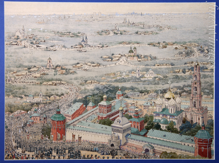 View of the Trinity Lavra of St. Sergius in Sergiyev Posad with the Easter procession from Moscow