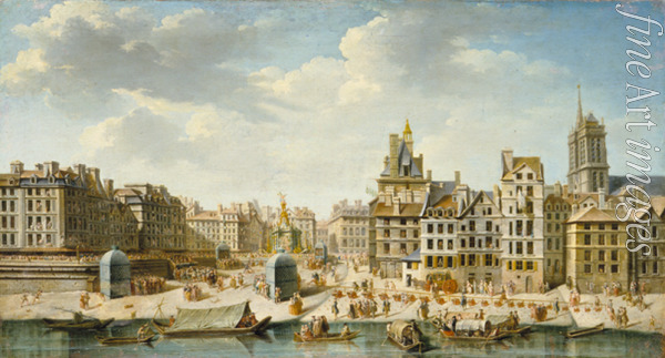 Paris, Cityscape, Big-city life, France, Clouds, Seine, View, Place de Greve, Boats, Embankment, French painting