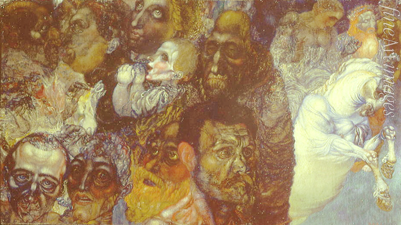 Symbol, Fear, Head, Horse, Allegory, Human, Desperation, Russian Avant-garde, Analytical painting, Anxiety, Uneasiness, Mystic, Dread, Cruelty, Heads, Face, Background, Environment