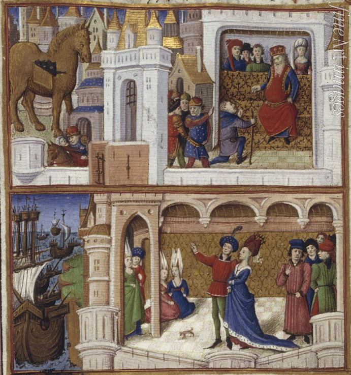 Roman mythology, Greek Mythology, Homer, Iliad, Trojan War, Virgil, Middle Ages, Manuscript, Manuscript illumination, Aeneas, Troy, Anchises, Aeneid, Medieval, Illuminated manuscript, Medieval Illuminated Letter, Illuminated art, Vergilius, Vergil, Aeneis, Miniature