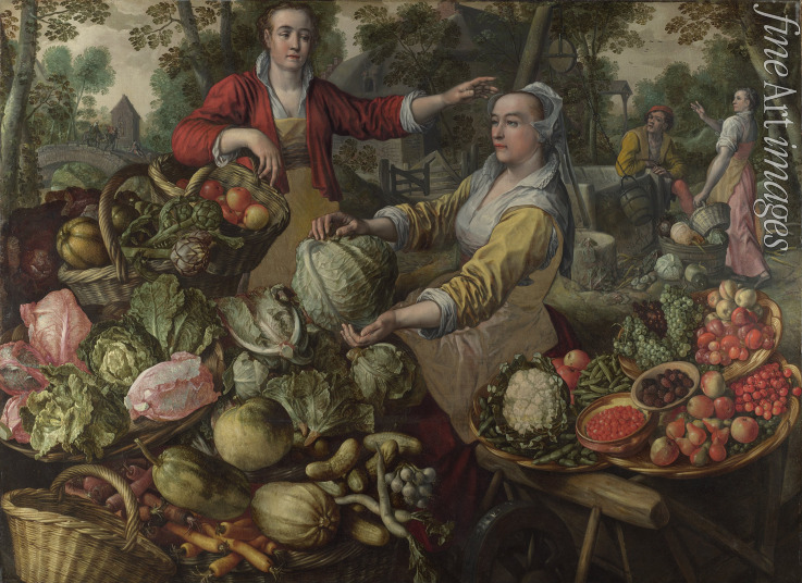 The Four Elements: Earth. A Fruit and Vegetable Market with the Flight into Egypt in the Background