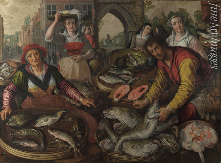 Beuckelaer Joachim - The Four Elements: Water. A Fish Market with the Miraculous Draught of Fishes in the Background