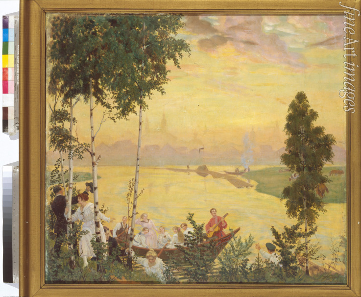 Summer, Country side, Seasons, Poetry, Music, Festival, Sunset, Clouds, Lady, Time of Day, Melancholy, Society, River, Shore, Music instruments, Water, Evening, Funny company, Picnic, Park, Riverbank, Russia, Church, Boat, Amusement, Musician, Play music, Weekday, Celebration, Fun atmosphere, Festivity, Genre scene, Folklore, Traditional, Silence, Guitar player, Guitar, Province, City life, Market woman, Bell tower, Volga, Kavalier, View of the Volga, Musical instruments, Musical instrument, Fête Champêtre, Fête galante, Pic-Nic, Guitarist