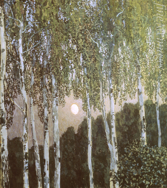 Summer, Nature, Seasons, Poetry, Summer landscape, Grove, Trees, Time of Day, Hill, Russia, Moon, Night, Silence, Moon light, Tree, Birches