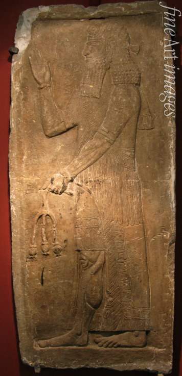 Priest with a branch of pomergranate tree. Detail of a relief from the palace of Assyrian king Sargon II
