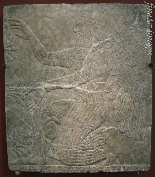 Assyrian Art - Winged deity by the sacred tree. Relief from the palace of Ashurnasirpal II at Kalhu, Nimrud
