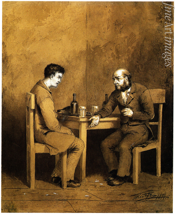 Raskolnikov und Marmeladov. Illustration for the novel Crime and Punishment by F. Dostoevsky