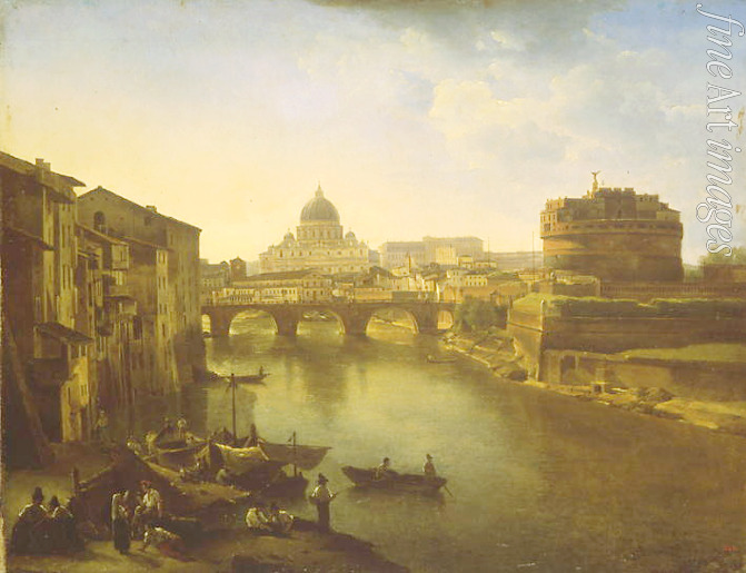 Keywords: Cityscape, Bridge, Noon, Time of Day, Lighting, Italy, View, Boats, Embankment, Fishermen, Romanticism, Romantic landscape, Ruin, Street corner, Rome, Tiber, The new Rome, Capital city, St. Peter's Basilica, Angel's Bridge, Castel Sant'Angelo, Basilica of Saint Peter, Basilica di San Pietro in Vaticano, Saint Peter's Basilica, Vatican