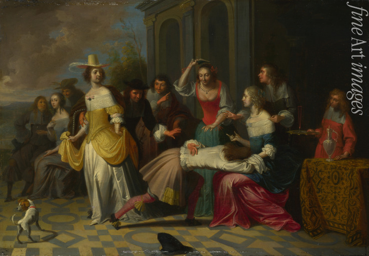 Lady, Time of Day, Society, Woman, Man, Ladies, Evening, Funny company, Pleasure, Dinner, Interior, Amusement, Barock, Feast, Banquet, Entertainment, Evening society, Sitting room, Living room, In the room, Gentlemen, Meeting, Amusing, Amorous, Game, Visitor, Visitors, Guest, Invitation, Party, Merry company, Feast meal, Ceremonial Dinner, La Main Chaude, Handjeklap, Hot Cockles, Feast table
