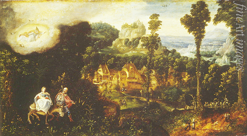 Keywords: Madonna, Virgin, Bible, Renaissance, New Testament, Holy Family, Joseph, Mary, The Flight into Egypt, Christ child, Angel of the Lord, Virgin Mary, Flight into Egypt, Rest on the Flight into Egypt, Rest during the Flight to Egypt, Herri met de Bles