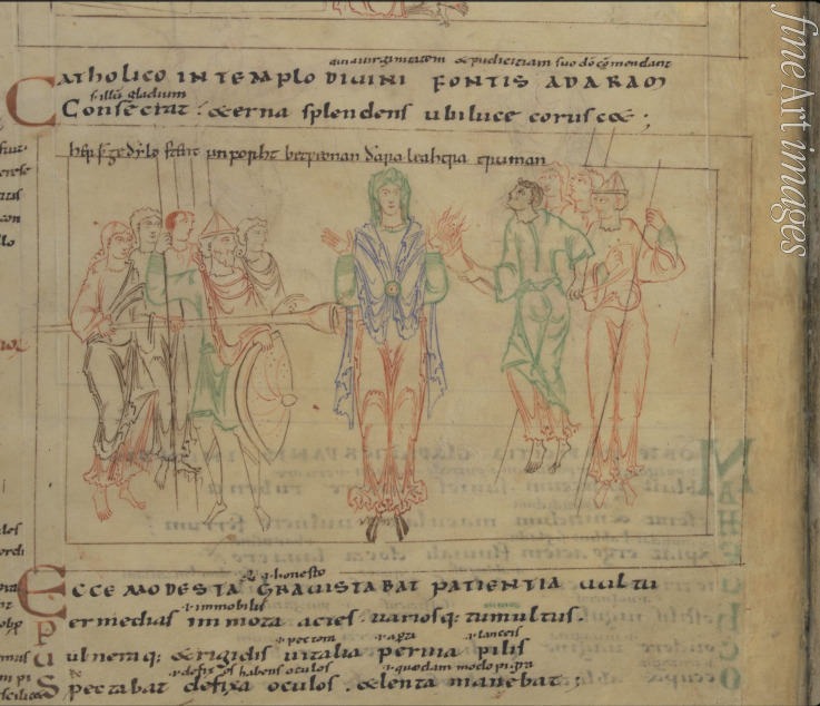 Middle Ages, Manuscript, Manuscript illumination, Medieval, Illuminated manuscript, Medieval Illuminated Letter, Illuminated art, Prudentius, Psychomachia, Battle for Man's soul, Miniature