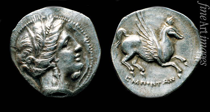 Coins, Pegasus, Roman goddess, Greek Goddess, Proserpina, Proserpine, Persephone, Empúries, Ampurias, Emporiae coins, Emporion, Coin
