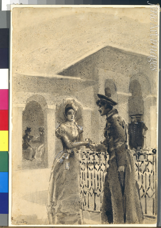 Princess Mary and Grushnitsky. Illustration to the novel A Hero of Our Time by Mikhail Lermontov