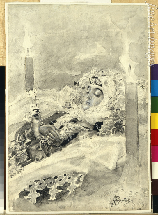 Tamara in the coffin. Illustration to the poem The Demon by Mikhail Lermontov