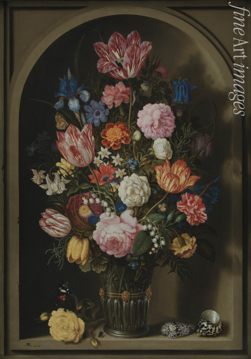 Flowers, Bunch of Flowers, Roses, Shell, Barock, Still life, Tulips, Stone Vase, Bouquet