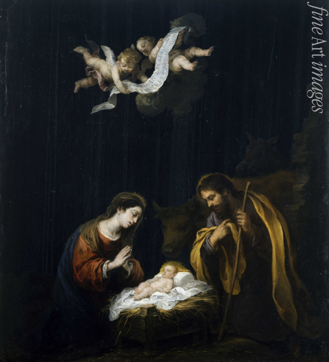Keywords: Idyll, Madonna, Virgin, Bible, New Testament, Virgin and child, Angels, Holy Family, Joseph, Saint Joseph, Mary, Christ child, Mother of God, Virgin Mary, Adoration of the Christ Child, Nativity, Christmas, Virgin in Adoration, Crib, Christmas crib, The Holy Night, Nativity of Christ, Holy Night