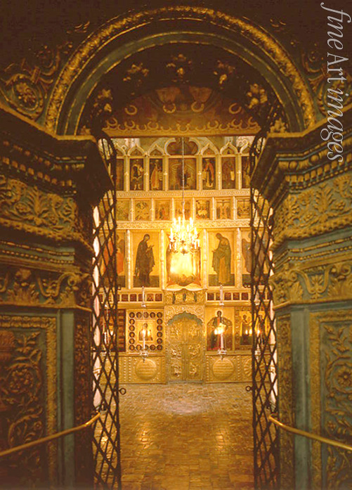 Interior with the iconostasis in the Annunciation Cathedral in the Moscow Kremlin
