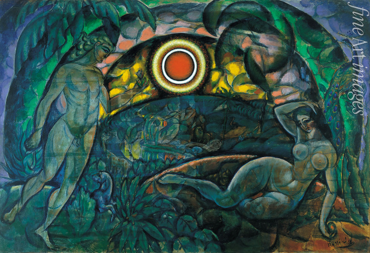 Keywords: Nude, Nudity, Paradise, Bible, Old Testament, Seduction, Nude body, Modern, Russian Avant-garde, Expressive, Sin, Good and evil, Expulsion from the paradise, Adam, Eve, Garden of Eden, The Fall of Man, Genesis, Fall, Adam and Eve, Book of Genesis, Tree of Knowledge, Cubofuturism, Cubo-Futurism