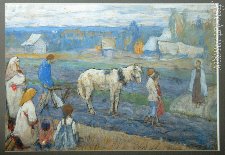 Sun, Country side, Seasons, Poetry, Lighting, Woman, Spring, Field, Ploughland, Plough, Land, Farming, Fresh start, Hope, Russia, Horse, Spring landscape, Peasant woman, Romanticism, Folklore, Traditional, Traditional dress, Farmland, Traditional costume, Peasants life, On the field, Ploughing, Plowing