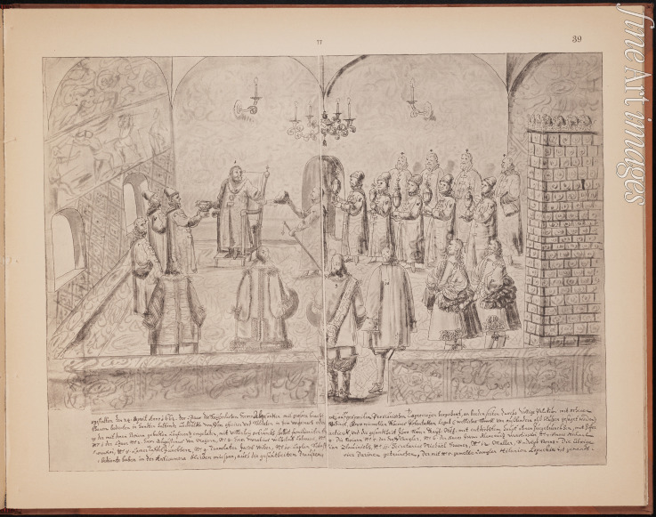Title:A scene at the royal court of Tsar Alexis Mikhailovich (Illustration from the Meierberg's Album)