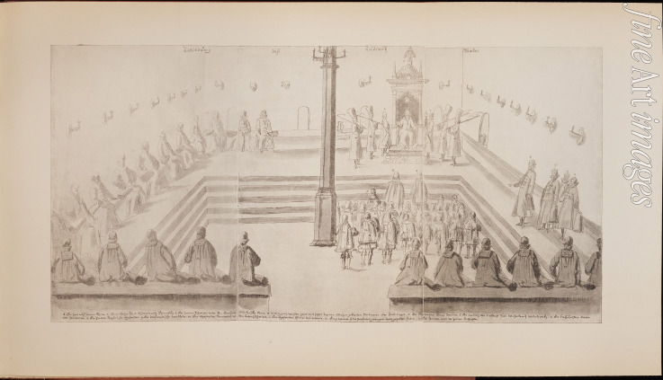 Meierberg (Meyerberg) Augustin von - A scene at the royal court of Tsar Alexis Mikhailovich (Illustration from the Meierberg's Album)