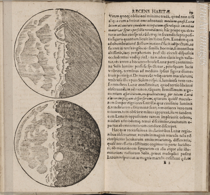 Leaf of book Sidereus Nuncius (Sidereal Messenger) by Galileo Galilei