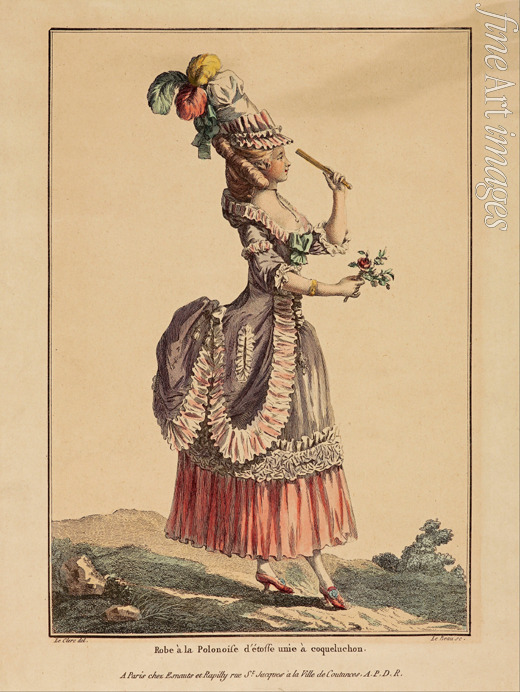 A Polonaise Dress with draped overskirt. (From Gallerie des Modes et Costumes Francais)