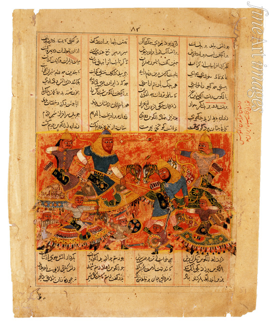 Rustam Kills the Turanian Hero Alkus with his Lance (Manuscript illumination from the epic Shahname by Ferdowsi)