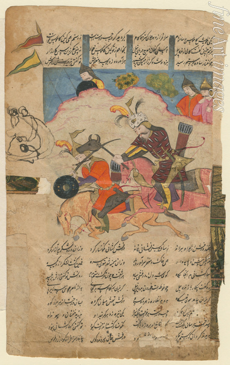 Combat scene from the epic Shahname by Ferdowsi
