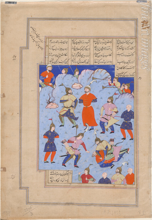Kay Kaus, King of Persia, captured by the King of Hamavaran (Manuscript illumination from the epic Shahname by Ferdowsi)