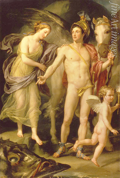 Poetry, Nude, Nudity, Nude woman, Love, Beauty, Ovid, Greek Mythology, Victory, Puttos, Lyricism, Perseus and Andromeda, Gorgons, Medusa, Seamonster, Pegasus, Winged horse, Shoes, Perseus, Andromeda, Gorgon, Shoe, Sandal, Sandals