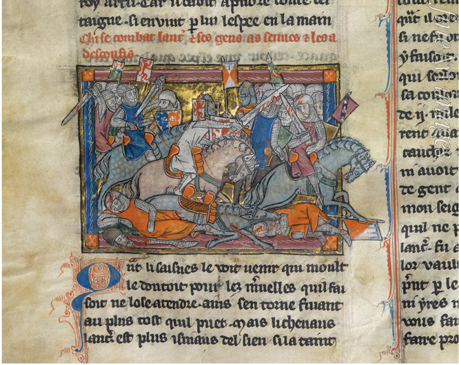 King Arthur fighting the Saxons (from the Rochefoucauld Grail)