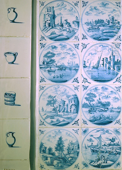 Wall tiles with a Dutch landscapes in the Antechamber of the Menshikov palace in Saint Petersburg