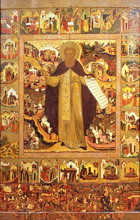 Russian icon - Saint Sergius of Radonezh with Scenes from His Life
