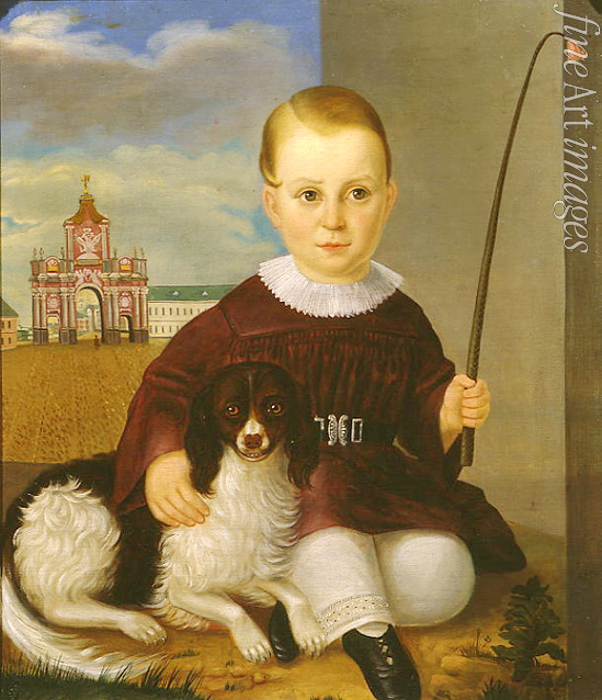 Boy with a dog before the Red Gates