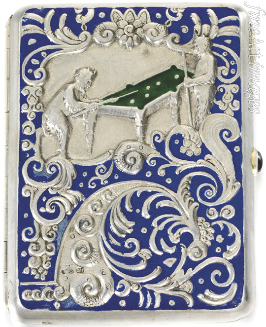 Cigarette case with two satyrs playing Russian billiard