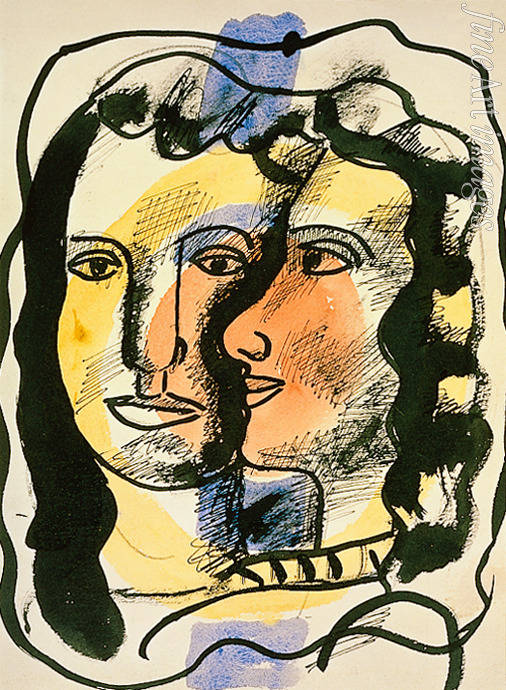 Decorative, Local Colours, France, Beauty, Woman's portrait, Female portrait, Two faces, Water colour, Modern