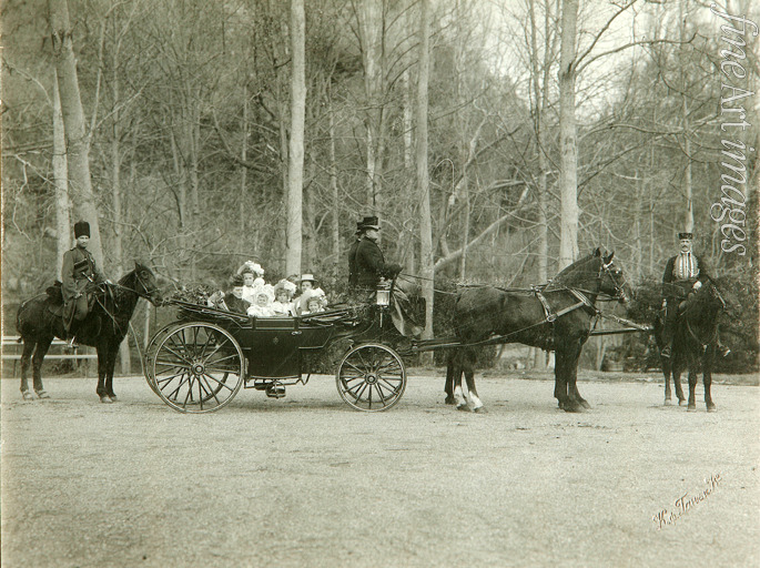 Title:Promenade of Emperor Nicholas II of Russia with Mother, Empress Maria Fyodorovna through the Park of Tsarskoye Selo