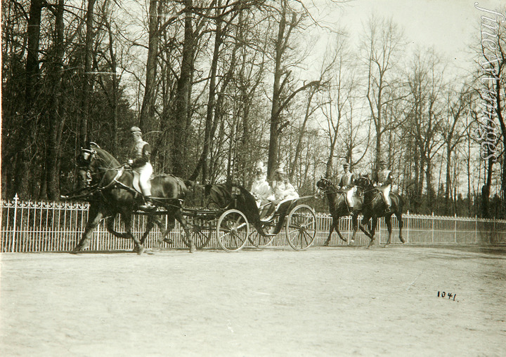 Photo studio K. von Hahn - Empress Alexandra Fyodorovna with Daugters in a Carriage