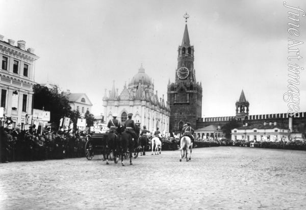 Tsar Nicholas II receives the parade of the pupils of Moscow in the Kremlin