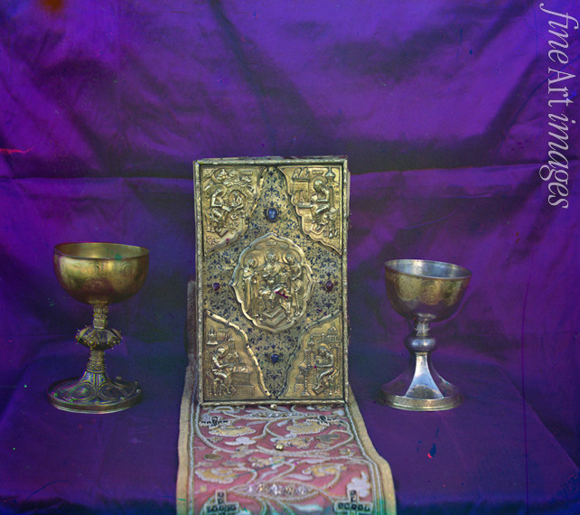 Prokudin-Gorsky Sergey Mikhaylovich - Gospel of Tsar Alexei Mikhailovich and the sacramental vessels of of Tsar Mikhail Feodorovich