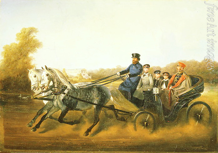 Emperor Alexander II with Sons in a carriage at Tsarskoye Selo